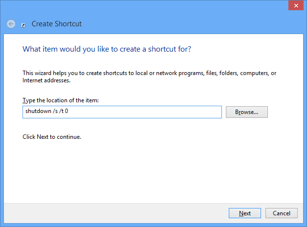 Another way to shut down Windows 8 faster is to create a shut down shortcut and put it somewhere on your Desktop taskbar. This is by far the fastest option to shut down Windows 8. To create the shortcut, do the following: